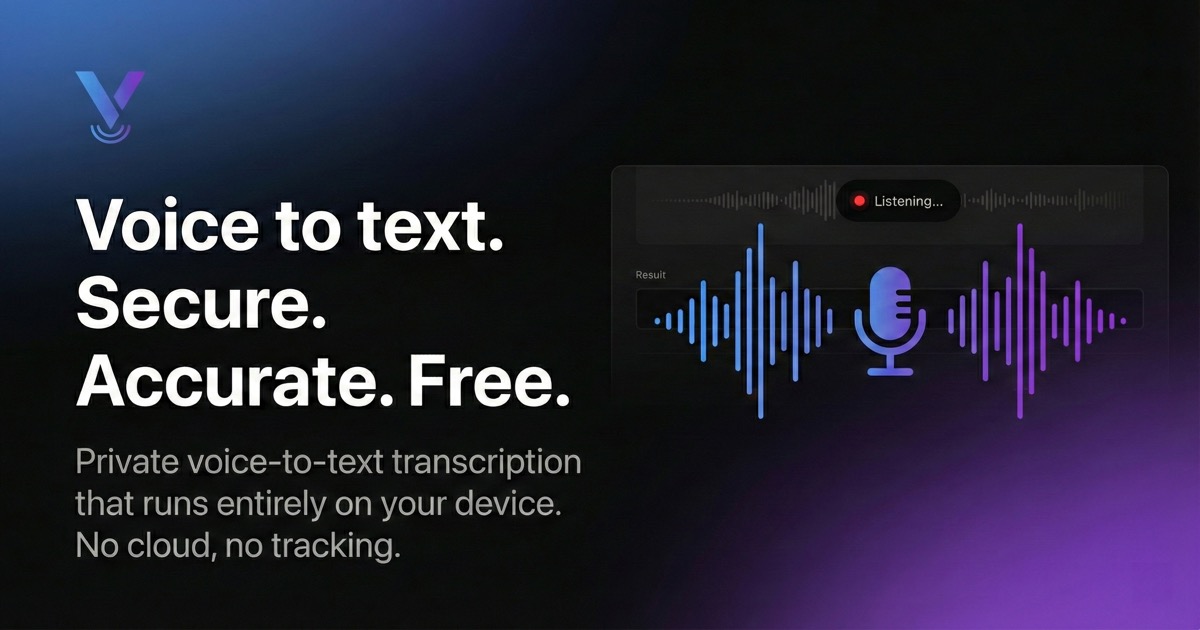 Designed for personal dictation and note-taking. Transcription runs entirely on your device - only the optional AI enhancement connects online.